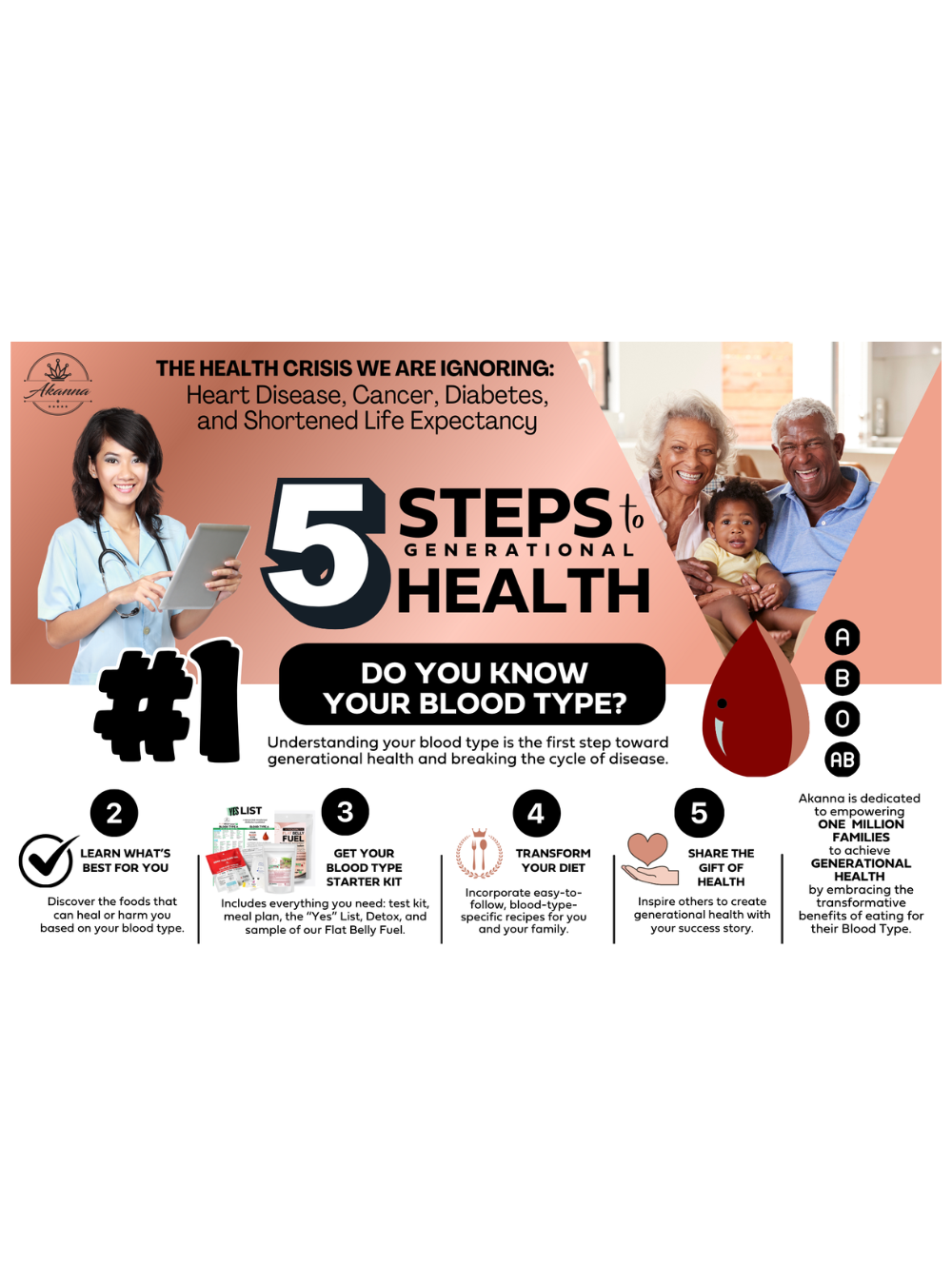Receive 30 QTY of the FIVE Steps to Generational Health NEW Postcard - EXTRA LARGE HEAVY WEIGHT