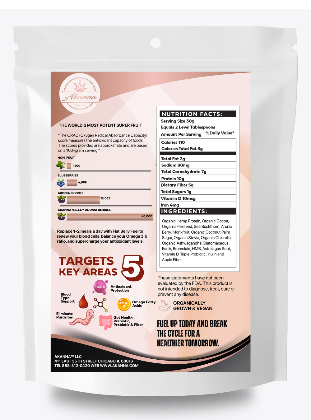 Add the comprehensive health test which includes the Blood Type Starter for just $50 with the purchase of this pack.  Introducing the first meal replacement designed to target five key areas of health:  Blood Type Support, Antioxidant Protection, Omega 3, 6, 7 & 9 Fatty Acids, Gut Health, & Protection against Parasites.